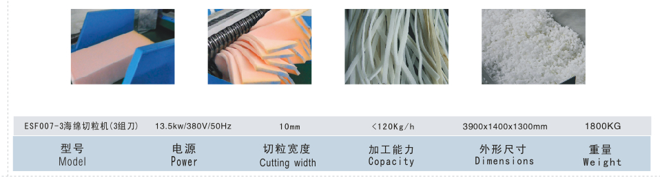 适用于将(jiang)海綿、裥綿(mian)(帶布的海(hǎi)綿)、噴膠綿(mián)等切成比(bǐ)較規則⚽的(de)🛀顆粒形狀(zhuang)。(長短3-30mm可調(diao))